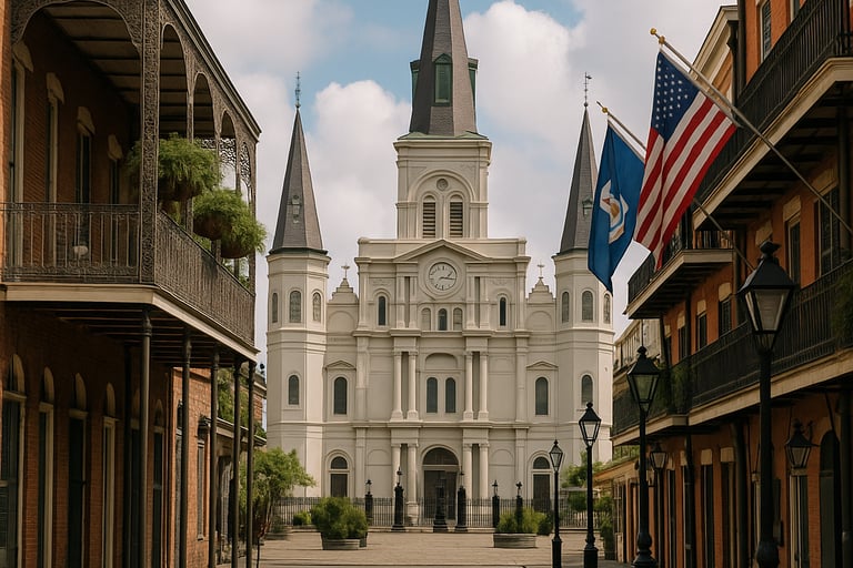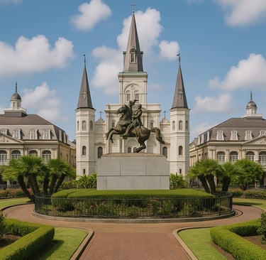 Originally Place d’Armes, Jackson Square anchors the Quarter. Learn about the Andrew Jackson statue, the square’s role in civic life, and the neighboring St. Louis Cathedral, the Cabildo, and the Presbytère. This area has been central to the Quarter’s public life for generations.